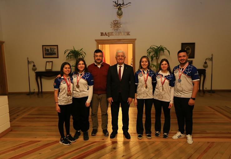 Samsun’da düzenlenen Salon Federasyonu kupası ve 2023 salon okçuluk Milli Takım seçmelerine katılan altı okçu, Muğla Büyükşehir Belediye Başkanı Dr. Osman Gürün’ü makamında ziyaret etti.