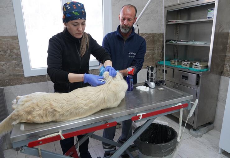 Menemen Belediyesi Geçici Bakım Evi ve Rehabilitasyon Merkezi’ndeki veteriner hekimler Hatay’dan gönderilen can dostlarla tek tek ilgilendi. Temizlenip genel kontrolleri yapılan can dostların, sağlık durumlarının iyi olduğu belirtildi.