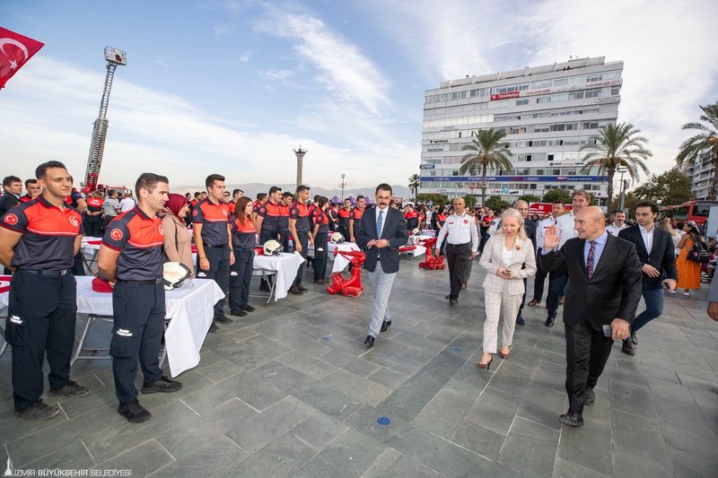 İzmir Büyükşehir Belediye Başkanı Tunç Soyer, 25 Eylül-1 Ekim tarihleri arasında kutlanan ve bu yıl 100’üncü kez düzenlenen İtfaiye Haftası’nın açılış törenine katıldı. İzmir Büyükşehir Belediyesi İtfaiye Dairesi Başkanlığı tarafından Cumhuriyet Meydanı’nda düzenlenen etkinlikle sendika ve derneklerin temsilcileriyle Atatürk Anıtı’na çelenk koyuldu. İzmir Büyükşehir Belediyesi bürokratları, sendika ve derneklerin temsilcilerinin yer aldığı programda asil memur olmaya hak kazanan personel için de yemin töreni düzenlendi.