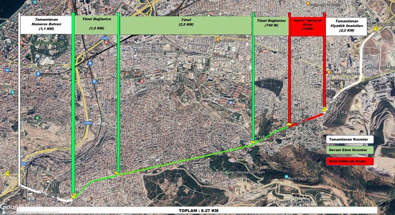 Buca Ufuk Mahallesi ile Bornova Çamkule arasında tamamlanacak 2.5 kilometrelik derin çift tüp tünel, aynı zamanda “tamamı kent sınırları içinde olan en uzun karayolu tüneli” olma özelliğini taşıyacak. İzmirlilerin halen kullanmakta olduğu Bayraklı 1 Tüneli 320 metre, Konak Tüneli bin 674 metre, Bayraklı 2 Tüneli ise bin 865 metre uzunluğunda.