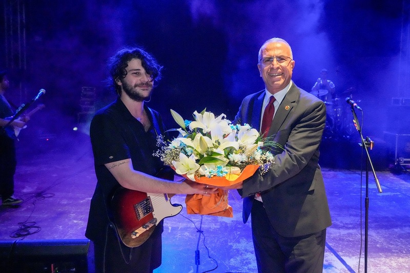 Başkan Ünal Işık, konser sonunda Yaşlı Amca grubuna çiçek vererek teşekkür etti.