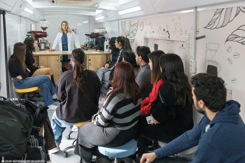 İzmir Büyükşehir Belediyesi’nin kahve hazırlama ve sunma alanında gençlere mesleki beceri kazandırmak için yollara çıkardığı Mobil Barista Otobüsü Aşık Veysel Gençlik Merkezi’ndeydi. Otobüsün ikinci durağı ise Çiğli Gençlik Merkezi olacak.