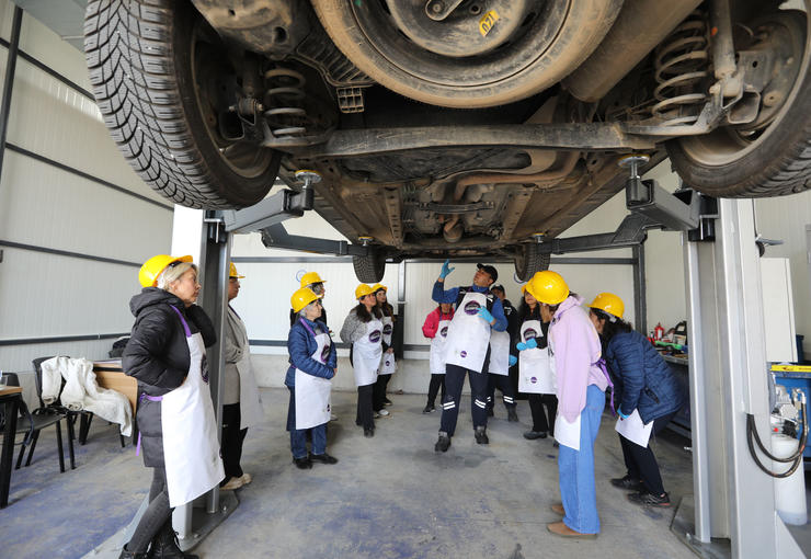 Kadınların teknik beceriler kazanarak günlük yaşamlarında daha bağımsız olmalarını destekleyen Muğla Büyükşehir Belediyesi, ilk etapta temel el aletleri kullanımı ve tamirat konularında eğitim verdiği kadınlara, şimdi de araç bakımı üzerine uygulamalı eğitimler sunuyor.