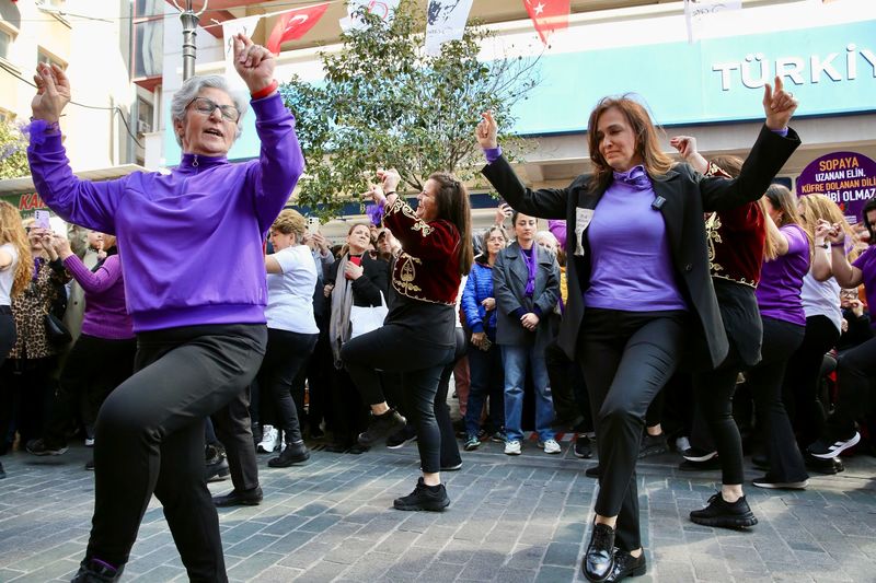 Kortej sonunda, Türkiye Cumhuriyeti’nin Kurucusu Gazi Mustafa Kemal Atatürk ve mücadele arkadaşları için saygı duruşunda bulunuldu, İstiklal Marşı okundu. Farklı yaş gruplarından kadınların oluşturduğu zeybek ekibi renkli bir gösteri sergiledi. Belediye Başkanı Yıldız Ünsal ve Karşıyaka Kent Konseyi Başkanı Dilek Karcı da harmandalı oynayarak gösteriye dahil oldu. Büyük alkış alan Ünsal; eşitlik, hak ve adalet mücadelesini el ele büyütmeye devam edeceklerini vurguladı.