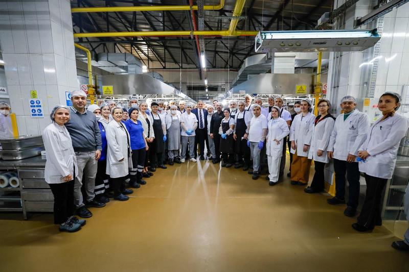 Temiz bir ortamda, titiz bir şekilde işlerini severek yapan personele teşekkür eden Başkan Tugay, “Pek çoğu uzun yıllardır burada görev yapıyor. Yoğun çalışma ortamına rağmen belediyenin yaptığı her işin güzel olması için çalışıyorlar. Onlara teşekkür ediyorum. Bir yerde profesyonel bir iş yaparken diğer yandan hayır işi yapıyorlar. Ben de kepçeyle bir ucundan tutarak küçük bir katkıda bulundum” diye konuştu.