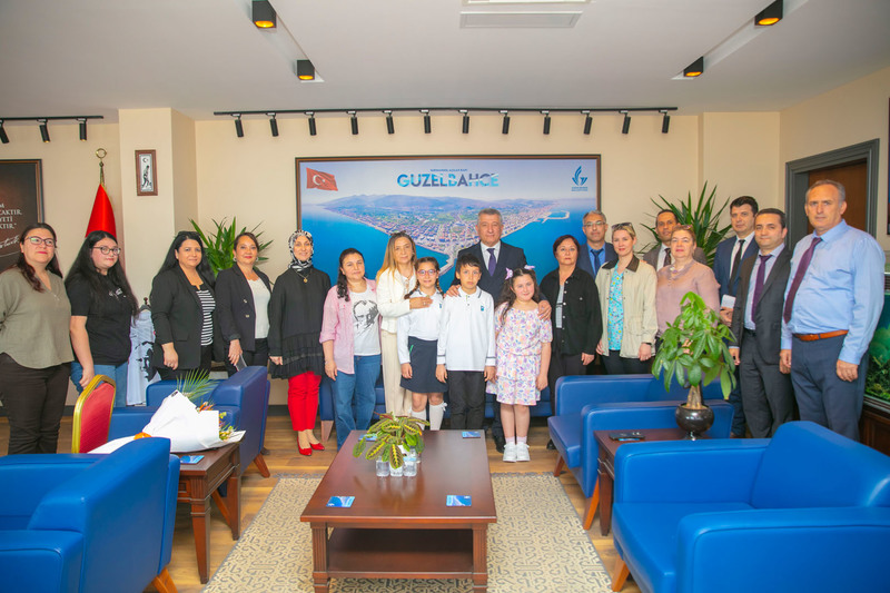 23 Nisan Ulusal Egemenlik ve Çocuk Bayramı dolayısıyla Güzelbahçe Belediye Başkanı Mustafa Günay, geleneksel olarak gerçekleştirilen koltuk devri kapsamında bu yıl farklı olarak başkanlık makamını bir günlüğüne üç öğrenciye bıraktı. Yelki Hamdı Dalan Okulu 4’üncü sınıf öğrencisi Ela Karataş, Bilgince Koleji 5’inci sınıf öğrencileri Begüm Öktem ve Alptekin Savaşçı oturdu. Başkan Günay, “Ulu Önder Mustafa Kemal Atatürk’ün çocuklara armağan ettiği bu özel günde, geleceğimizin teminatı olan çocuklarımızın hayal gücü ve vizyonuyla belediye yönetimine renk katacağına inancımız büyük.. Minik başkanlar belediyenin çalışmalarına dair fikirlerini paylaşacak, hayalindeki Güzelbahçe'yi anlatacak. 23 Nisan sadece bir bayram değil; çocuklarımızın söz sahibi olduğu, kendilerini ifade edebildikleri ve geleceğe umutla bakabildikleri çok kıymetli bir gündür. Onların gözünden kentimizi görmek bizler için büyük bir ilham kaynağı. Gelecekte onlar bu şehirleri yönetecekler. Bizlerde onlara güzel bir gelecek bırakmak için var gücümüzle çalışacağız. Güzelbahçe Belediyesi olarak, tüm çocuklarımızın 23 Nisan Ulusal Egemenlik ve Çocuk Bayramı’nı kutluyor; barış, kardeşlik ve sevgi dolu bir dünya diliyoruz. Vermiş olduğunuz talimatları müdürlerimiz hızlı bir şekilde ve en kısa zamanda tüm eksiklerin giderilmesi için titizlikle çalışmalara başlayacaklar” dedi.