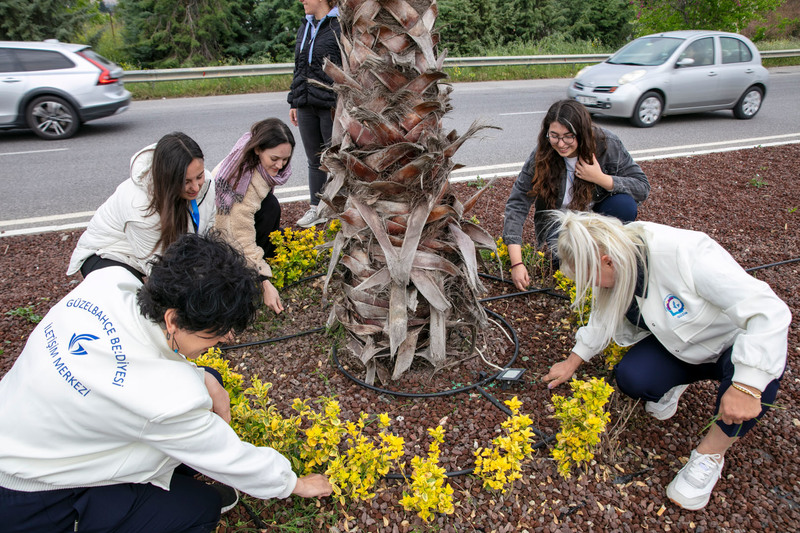 Güzelbahçe Belediyesi Müdür, memur ve ofis personelleri yenilenen Seferihisar orta refüjü ve ilçenin çeşitli yerlerinde dikilen oya ağaçlarının bakımını yaptı.