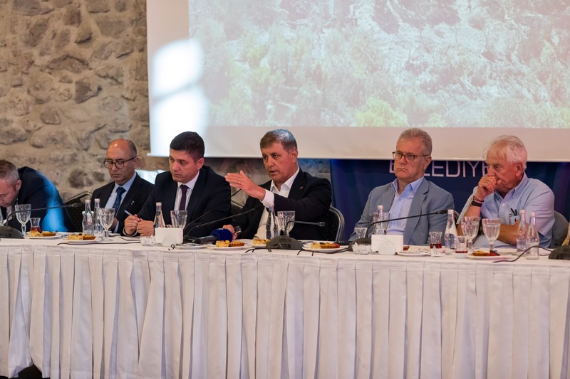 Toplantıda konuşan İzmir Büyükşehir Belediye Başkanı Dr. Cemil Tugay, yangınlara karşı alınabilecek tedbirleri anlattı. Tugay, “Yangın riskinin yüksek olduğu kırsal alanlarla, yerleşim birimlerinin ilişkilerini yeniden gözden geçirmemiz lazım. Kent-kırsal alan, yerleşim birimi- ormanlık alan ilişkisinin, yangın riski açısından yeniden değerlendirilmesi gerekiyor. Bunu görmeden devam edersek, bizim daha çok evimiz, köyümüz yanar. Çok yer zarar görür. Binaların, yapıların yangınlara dirençli hale gelmesi için çalışma yapmak gerekiyor. Bütün köylerimizi yangın riski açısından inceleyip, ona göre yeniden yapılandırmak, yangın riski yüksek olan evlerin de özellikle çatılarını, dış cephelerini yangına karşı dirençli hale getirmek lazım. Bunların hepsi şehrin gelecek perspektifi içerisinde konuşulması, geliştirilmesi, yapılması gereken şeyler” dedi.