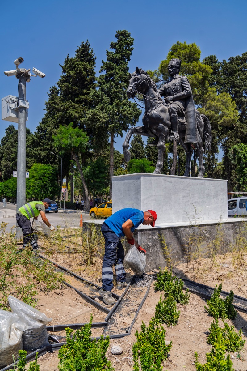 İzmir Büyükşehir Belediyesi Park ve Bahçeler Dairesi Başkanlığı, kentin su kaynaklarını en verimli şekilde kullanarak kentin yeşil alanlarını koruyacak önlemleri hayata geçiriyor. İzmir’in kamusal alanlarında peyzaj dönüşümünü hızlandıran ekipler, kavşak, refüj ve parklarda az su tüketen iklim rejimine uyumlu bitkilerin ekimini gerçekleştirdi. Akıllı sulama sistemi ve kayıp kaçak önlemleriyle de su kayıplarının önüne geçti.