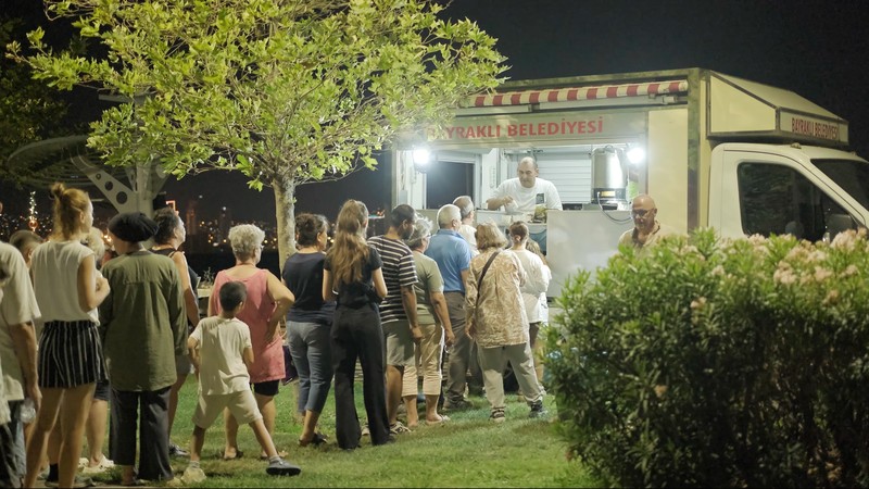 Bayraklı Sahili Turgut Özal Rekreasyon Alanı’nda gösterilen, yönetmenliğini ve başrolünü Ata Demirer'in üstlendiği Bursa Bülbülü filmi, yüzlerce kişiyi bir araya getirdi. Özge Özacar, Melek Baykal ve Celil Nalçakan gibi usta oyuncuların da yer aldığı yapım, izleyicilere keyifli anlar yaşattı. Yanlarında getirdikleri sandalyeler ve piknik malzemeleriyle sahili dolduran vatandaşlar, nostaljik bir atmosferde film izlemenin tadını çıkardı. Seyircilere patlamış mısır, çay ve limonata da ikram edildi.