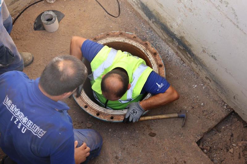 “Güzelhisar (Petkim) Barajı ile Sarıkız ve Göksu Kuyuları’ndan şehrimize su taşıyan 2,2 metre çapındaki ana su isale hattında dün gece büyük bir patlak meydana gelmiştir. Çiğli 9 Eylül Mahallesi’nde yerin 3 metre altında gerçekleşen bu patlağa, ekiplerimiz kısa sürede müdahale etmiştir. Öncelikle ana isale hattındaki su boşaltılma işlemi başlatılmış ve eş zamanlı olarak vatandaşlarımıza SMS ve sosyal medya hesapları aracılığıyla bilgilendirme yapılmıştır. Su boşaltma işleminin ardından ekiplerimiz, en yakın baca noktasından girerek, yer altından 470 metre ilerleyerek arızaya müdahale etmiştir. Arızalanan hattaki boru çapının büyüklüğü ve teknik özelliklerine uygun olarak boru içinden ve dışından başlatılan onarım işlemleri gece boyunca devam etmiş ve çalışma tamamlanmıştır. 42 km uzunluğunda ve 2,2 metre çapındaki isale hattına verilecek suyun uygun seviyeye gelmesinin ardından, bu gece saat 22.00’de vatandaşlarımıza suyu ulaştırmayı hedeflemekteyiz.”