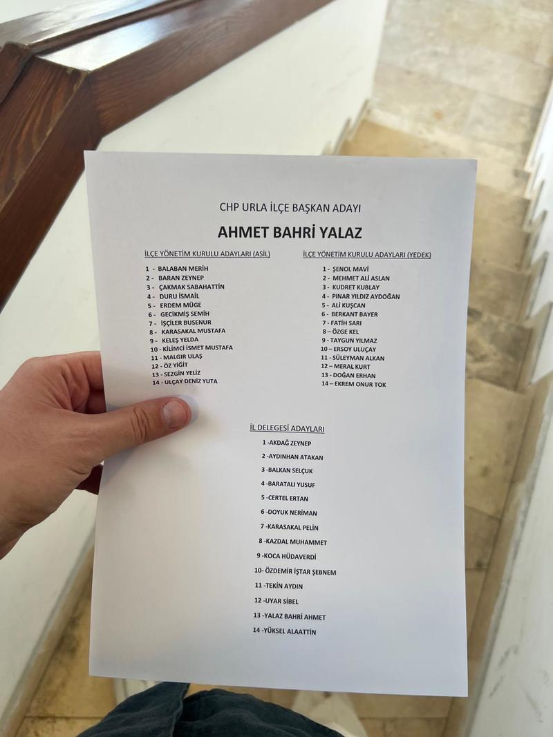Urla'da Yalaz'ın 14'er kişilik asil ve ydek yöneyim kurulu üyeleri ve 14 kişilik İl Delegeleri listesi de belli oldu: