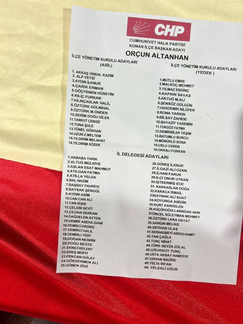 CHP Konak İlçe Başkan Adayı Orçun Altanhan konuşmasında: “Konak’ı saygıyla selamlıyorum. Memleketin durumu belli. Halkımızın çoğu fakirleştirildi. Muhalif olanlar içeri atılıyor. Tarikatlar devletin tüm kurumlarda artık yer alıyor. Biz gençler olarak bu düzeni değiştirmek istiyoruz. Biz bir kongre yapmıyoruz. AKP’nin gidişine hazırlanıyoruz burada. Biz bu yüzden buradayız. İnsanca ve hakça bir düzen kurmak istiyoruz. Kayyum olarak kim atanırsa atansın karşısında dimdik duracağım. Ağır şartlar altında ülkeyi kurtarmak zorundayız. Tek adam rejimi bilmelidir bu korku düzeni bitirilecek. Arkama bir belediye başkanı alır mıyım diye hiç düşünmedim. Arkama birilerini alır mıyım diye hiç düşünmedim. Ben sadece örgütüme inanıyorum. Beni Konak yetiştirdi. Burada Konak’ın çocuğu olarak bulunuyorum. Biz bu örgütü kamu gücüyle değil sizlerle büyüttük. Emekçiyi yok sayanlar korksunlar. Erdoğan korksun Erdoğan korksun. Son bir CHP’li kalana dek mücadele büyüyecek” dedi.