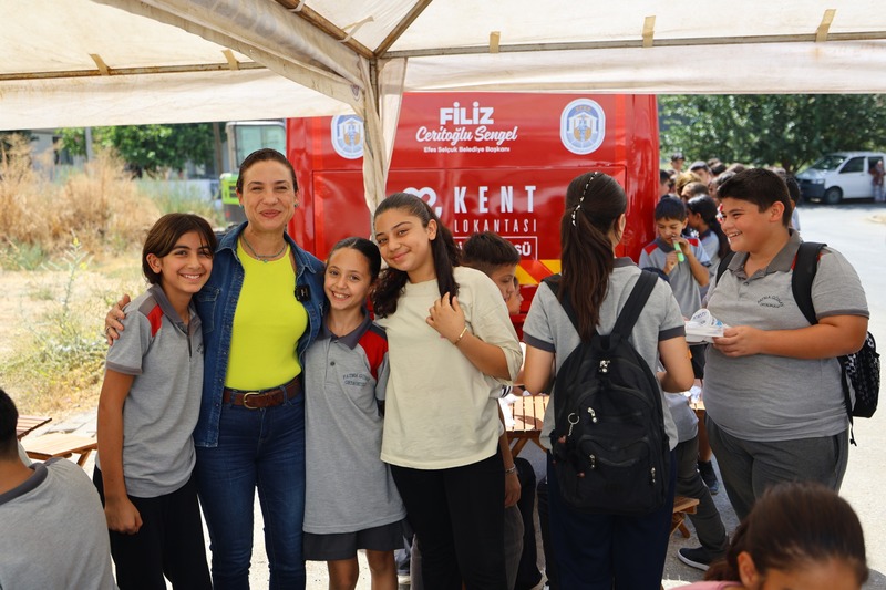Geçtiğimiz eğitim- öğretim yılının sonunda üçüncü Kent Lokantası Öğrenci Otobüsü müjdesini veren Efes Selçuk Belediye Başkanı Filiz Ceritoğlu Sengel, yeni eğitim-öğretim yılının başlaması ile Fatma Günay Ortaokulu’nda öğrenciler ile bir araya geldi.