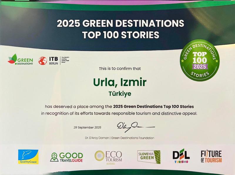 Urla Belediye Başkanı Selçuk Balkan'ın geçtiğimiz yıl ilçedeki sürdürülebilir turizmi desteklemek ve kültürel mirası yaşatmak amacıyla kurduğu, Urla'daki gastronomi odaklı festivalleri tek çatı altında toplayan Gastrofarm Urla, Green Destinations’ın “En İyi 100 Hikaye” yarışmasında ödüle layık görüldü.