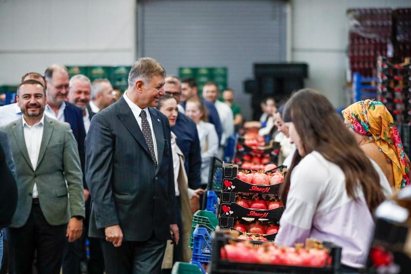 İzmir Büyükşehir Belediye Başkanı Dr. Cemil Tugay, Selçuklu çiftçilerle nar hasadı yaptı. Zeytinköy’de düzenlenen hasatta çiftçilerin taleplerini dinleyen Başkan Tugay, nar hasadının ardından mahsulün dünyaya açıldığı Deppo Efes’i ziyaret etti. Selçuklu üreticilerin başarısıyla İzmir’in diğer bölgelerine de örnek olacağını ifade eden Başkan Tugay, “Buradaki bu güzel çalışmayı daha ileriye götürmek için çaba göstermeye devam edeceğiz. Gelecek çalışarak güzel olacak. Tarıma sahip çıkmaya devam edeceğiz” dedi.