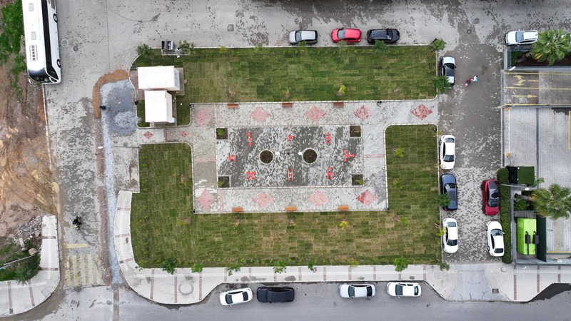 Toplam 2 bin 285 metrekare yeşil alanın kazandırıldığı alana Anadolu sığla, dut, akçaağaç, lale ağacı, meşe, ligustrum, beyaz ve pembe çiçekli akasya, jakaranda, sofora ve süs eriği olmak üzere toplam 123 ağaç, 280 çalı dikildi ve çim serildi. Peyzaj çalışmalarında dolomit taşı, bazalt taşı ve cüruf kullanılarak şık bir görüntü oluşturuldu.