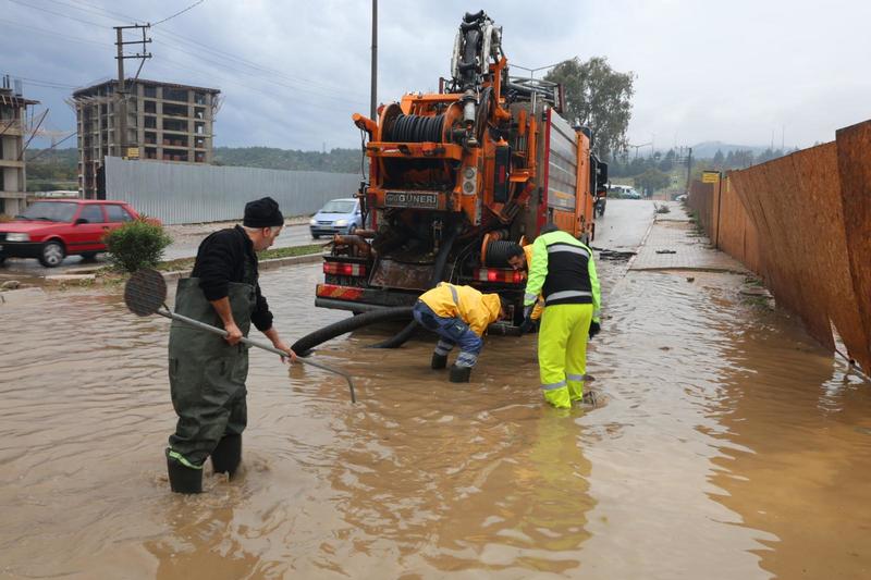 Karaburun, Çeşme ve Foça'da etkili olan yağışlar için ekipler seferber oldu
