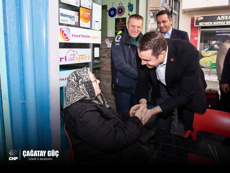 CHP İzmir İl Başkanı Çağatay Güç ve Narlıdere Belediye Başkanı Erman Uzun ziyarette vatandaşlarla da sohbet etti.