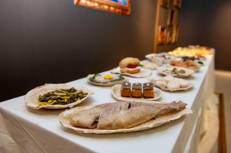 İzmir mutfağının simgeleşmiş tatları, tekstil sanatının farklı teknikleriyle; keçe, atık kumaşlar ve sürdürülebilir malzemeler kullanılarak üç boyutlu çalışmalara dönüştürüldü. Zeytinyağlılardan Ege otlarına, hamur işlerinden deniz ürünlerine kadar geniş bir yelpazeyi kapsayan eserler, gastronomiyi çevre bilinciyle ele alan çağdaş bir yorum sunuyor. Sergide ayrıca yapay zekâ teknolojisiyle üretilmiş dijital çalışmalar da yer alıyor. İzmir’in kültürel lezzetleri, Rönesans estetiğini çağrıştıran sahnelerle yeniden tasvir edilerek geçmiş ile geleceğin birleştiği yenilikçi bir atmosfer oluşturuyor.