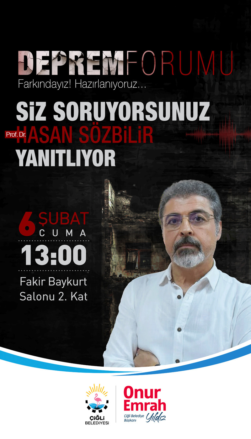 Çiğli Belediyesi, 6 Şubat 2023’te yaşanan ve ülkemizi derinden sarsan depremlerin yıl dönümünde, deprem gerçeğine dikkat çekmek ve toplumda farkındalık oluşturmak amacıyla bir “Deprem Forumu” düzenliyor.