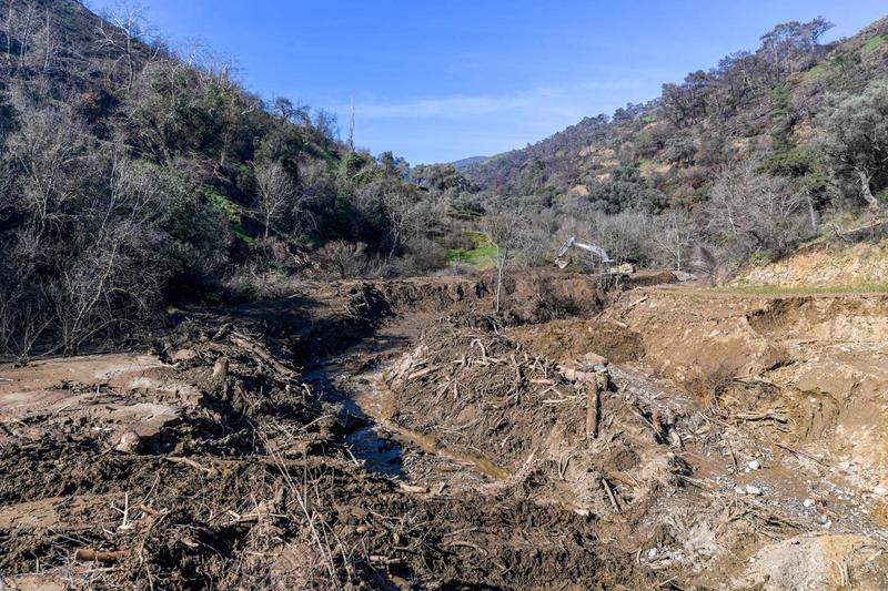 Yangının ardından kesilen ağaç tomrukları menfez girişini tıkadı