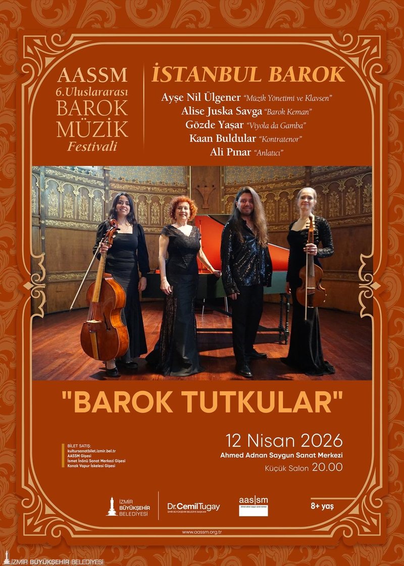 12 Nisan’da saat 20.00’de “İstanbul Barok-Barok Tutkular” konseri gerçekleştirilecek. Ülkemizin eski üslup ve otantik çalgılarla barok müzik icra eden ilk topluluğu olan İstanbul Barok, oda müziği, konçertolar, korolu yapıtlar ve barok operalardan oluşan repertuvarıyla izleyicilere benzersiz bir müzik deneyimi sunacak.