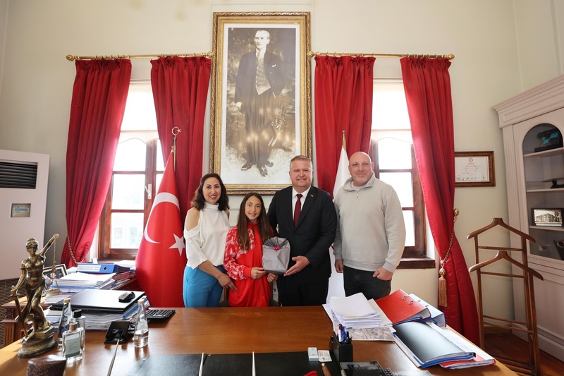 Ege'nin Sesi- 2026 Techno 293 Dünya Şampiyonası U13 Kızlar kategorisinde Dünya Şampiyonu, U13 Kız 5.0 kategorisinde de birincilik elde eden ve U13 Genel kategorisinde ise ikinci olarak gümüş madalya kazanmayı başaran Urlalı sporcu Nilda Evin Urla Belediye Başkanı Selçuk Balkan'ı ziyaret etti.