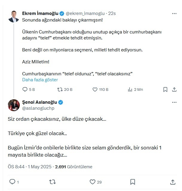 Her gün Sayın İmamoğlu X’te birkaç paylaşım birden yapar. O paylaşımlarının altında “Seninle birlikteyiz, yalnız yürümeyeceksin..” minvalinden sıkça İzmir İl Başkanının “destek” tweetleri attığını da mutlaka görürüz, görmüşsünüzdür. Aşağıdaki örnek gibi…